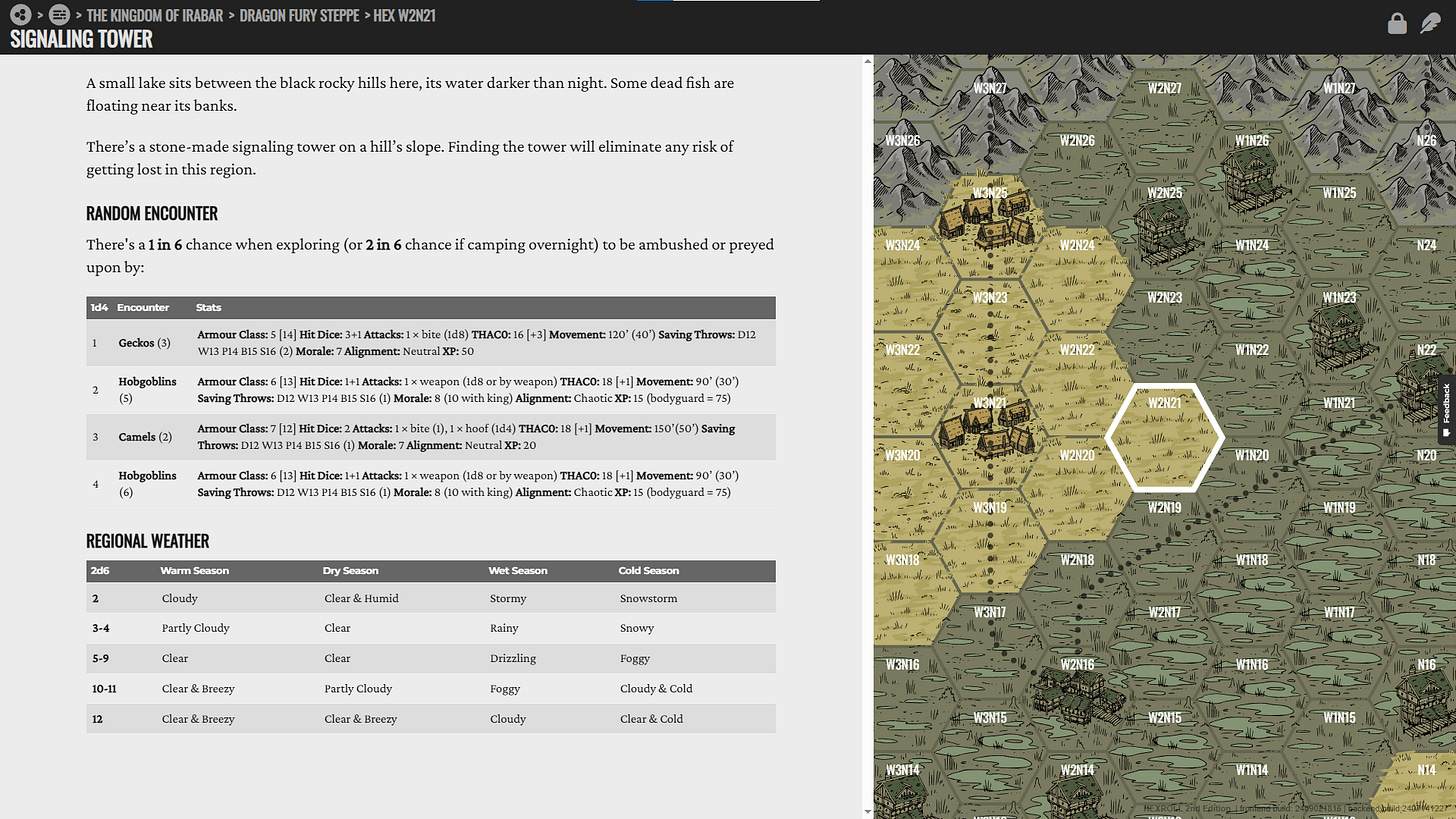 Rogueland is free on Cavern Of Heresy’s itch.io and Hexroll is free — with extra features available through Patreon. There’s a lot to come for that tool in the near future!