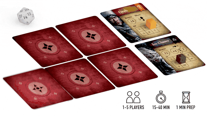 Back in October, I backed Kozz Game’s 3 Dark Tomb games. If you are familiar with my work, you know that I love very minimalistic games and Dungeon-Crawler, that’s why I made my game GrimRogue in the first place. Here, the simple metal box with cards, a d20 and some wooden tokens did the trick for me and I was pleased with the pocket format idea and the minimalistic vibe of the whole thing.