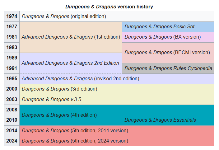 Editions of Dungeons & Dragons - Timeline @Wikipedia |